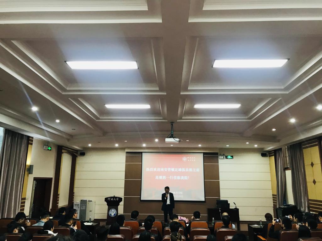 23日上午高继胜一行来到德赢winac米兰进行访问。他以“英超俱乐部经营之道”为题做了专题演讲报告,以“足球到底是什么”、 “生物计算看足球教育”、“ 英超俱乐部的经营模式 ”为切入点,向在场师生娓娓讲述了英超多年来的发展历史,让大家感受到了体育产业发展存在的巨大潜力。他指出,足球创造的不仅仅是经济,更是让人类享受的文明。同时他表示,中国的足球有“硬件”但缺乏“软件”,没有文化的支撑,足球发展路漫漫其修远兮,但坚信中国一切皆有可能,呼吁我们新一代的年轻学者为此奋斗。