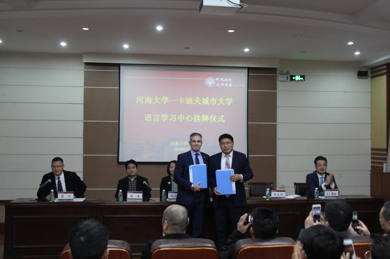 3月11日上午,“德赢ac米兰官方合作-卡迪夫城市大学语言考试与学习中心”揭牌仪式在德赢winac米兰电教室举行,德赢ac米兰官方合作国际合作与交流处处长毛立群、卡迪夫城市大学体育与生命科学学院副院长Alun R Hardman、卡迪夫城市大学驻华首席代表李斌、德赢winac米兰党委书记洪浩、院长张大超等出席揭牌仪式。