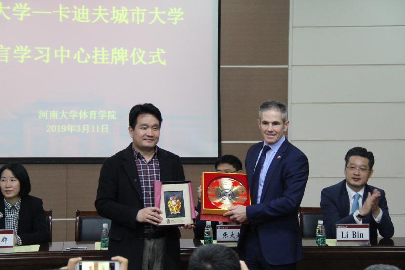 仪式开始前,国际合作与交流处副处长张波、德赢winac米兰相关领导与卡迪夫城市大学代表团一行就本科生“3+1”联合培养、学生互访和语言中心的运作等细节问题进行了深入的洽谈。双方的全方位合作,能够使学生享受国际化教学资源,有利于学生综合能力的提升,对于德赢体育学科的发展和体育专业的建设有重要的推动作用。