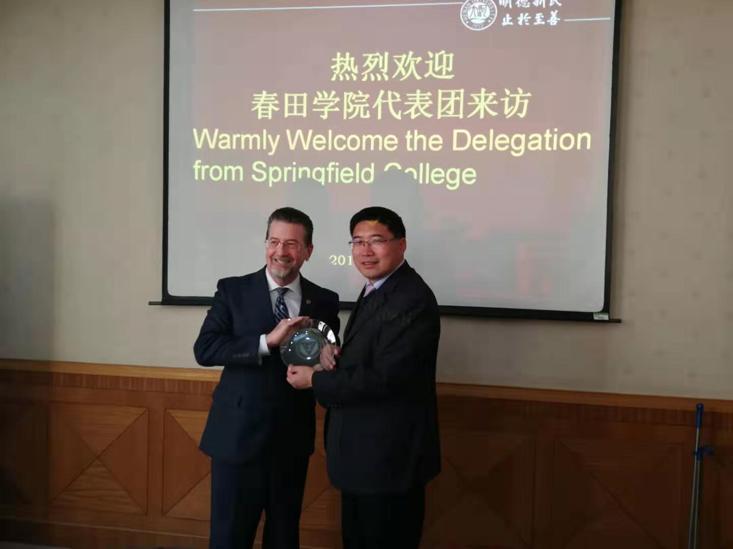 张大超院长向客人介绍了德赢德赢winac米兰的专业、师资、科研及重大体育赛事获奖情况,希冀借此合作促进两校体育学科的深入合作。Stuart Jones介绍了春田学院的教育理念和办学概况,并希望以此次合作为契机,逐步拓展体育运动技能方向的学科研究、教师交流以及学生互派等相关方面的深度合作。双方就合作细节进行了深入探讨,并签署了合作备忘录。