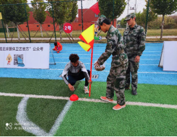 场地器材组人员少、任务重,不仅要将11人制足球场重新划线调整为8人制足球场,还要配合裁判组布置技能综合测试场地以及比赛所需的各种器材设施。