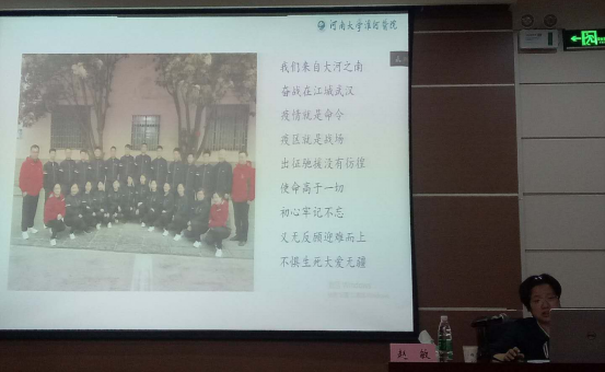 报告结束后,在场党员和赵展开亲切互动交流,感谢以赵敏同志为代表的抗疫英雄们,他们不顾个人生死安危,牺牲小我,更不畏艰险、奋勇争先,迎难而上、攻坚克难,用血肉之躯和刚毅精神为广大人民铸就一道安全防线,为全国夺取抗疫斗争阶段性胜利贡献“河大”力量!