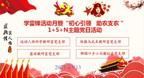 时值学雷锋活动月,为学习并践行无私奉献、热爱劳动的雷锋精神,2021年3月13日上午,德赢运动人体科学教研室党支部、体操与武术教研室党支部、篮球教研室党支部走进开封市龙亭区柳园口乡脱贫村小马圈,与该村党支部联合开展“初心引领 助农支农”1+5+N主题党日活动。