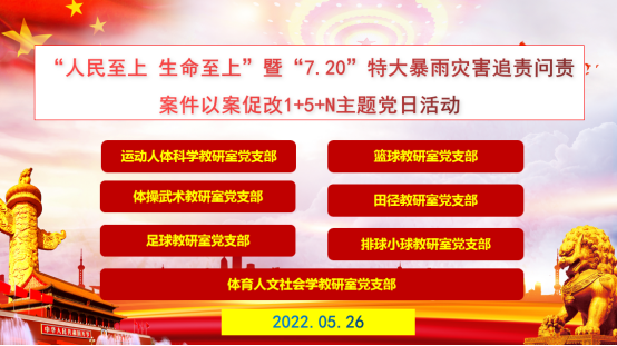 根据德赢党委《开展郑州“7•20”特大暴雨灾害追责问责案件以案促改工作方案》要求及德赢winac米兰院党委工作部署安排,在学院党委的组织下,运动人体科学教研室党支部、篮球教研室党支部、体操与武术教研室党支部、田径教研室党支部、足球教研室党支部、排球小球教研室党支部、体育人文社会学教研室党支部等进行党支部联建,共同开展“人民至上,生命至上”暨“7•20”特大暴雨灾害追责问责案件以案促改1+5+N主题党日活动。
