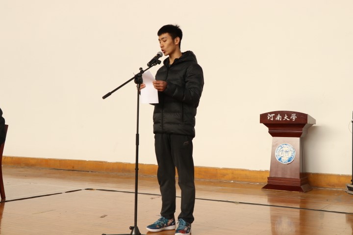 学生代表2017级本科体育教育专业郑国荣向同学们分享了自己的学习、复习经验,号召同学们要考出真实水平,考出体院人的风采。