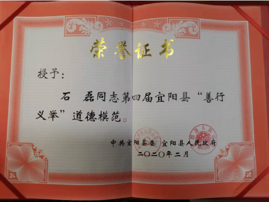 “危险来临不犹豫,关键时刻显身手”,2020年1月11日,德赢2019级体育教育专业学生石磊在听到有人落水的求救声后迅速做出反应,赶到事发现场将落水儿童救出,并运用心肺复苏技巧对其进行抢救,有效保护了儿童的生命安全,荣获2020年度宜阳县“善行义举”道德模范。