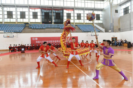 开始之前由德赢winac米兰啦啦操健美操队、体育舞蹈队和舞龙舞狮队结合学院专业特色为在场的所有毕业生奉献了一场精彩的热场节目表演,表达了学子在校期间的学习奋斗,面临毕业季的不舍之意以及对毕业生万里鹏程的祝愿。表演洋溢青春气息,引得在场的领导老师和毕业生同学们满堂喝彩。