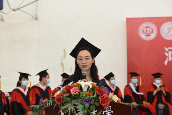 会中,博士毕业生代表王真真、硕士毕业生代表魏艺、本科毕业生代表张润晨,分享了他们在校期间成长的心路历程,学校厚重的文化底蕴对他们的影响,导师的博学包容成熟心智、拓展知识,让他们带着闪光的大学记忆不忘初心、秉持勇气与担当继续前行。在校生代表吕彦瑾、刘文分别发言,感谢学长学姐们关照他们的生活、为他们指引方向,并衷心祝愿前辈们前程似锦。教师代表副教授王玉珍给学生送上了三个箴言:心怀感恩、保持善良、努力奋进。辅导员代表吴磊分享了他与学生历历在目的难忘回忆,并希望毕业生们多一些友善和理解,常回家看看。