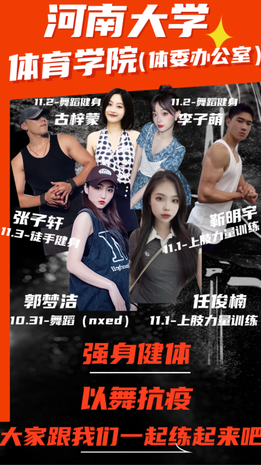 德赢winac米兰更是举办了“强身健体,以舞抗疫”的全民健身活动,通过直播健身带动河大师生一同锻炼,强身健体,一扫“疫”霾。活动指导老师为德赢ac米兰官方合作啦啦操队教练梁圆与德赢ac米兰官方合作体育舞蹈队教练张笑笑。教练员包括河南省体操队健将靳明宇同学;夺得多次全国锦标赛冠军选手任俊楠和郭梦洁同学;获多次全国体育舞蹈比赛第一名的李子萌和古梓蒙同学;获多项省、全国赛事优异成绩的张子轩和王宇洲同学。不少学生反映,直播健身的教练就是自己身边的同学,带动力、感染力更强,随着明快的音乐,边健身边与主播互动提问,直播健身变成一个能够走进生活的解压方式。德赢winac米兰院长周珂认为,发扬学生专业性优势,在疫情隔离期间为广大师生提供直播健身的渠道,也是学生通过实践加固专业技能的机会。学生通过充分备课、把控课程进度、及时回应观众反馈,都充分展现了“铁塔牌”体育人的责任、能力与担当。