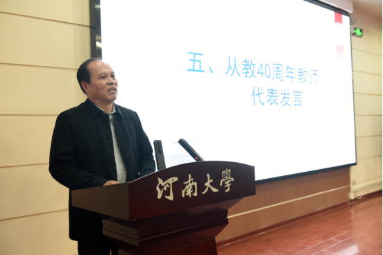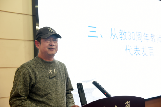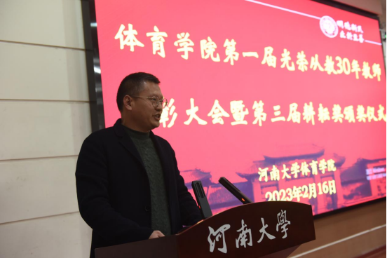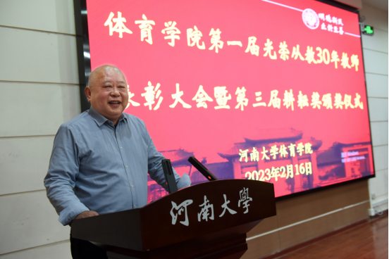 张强教授作为从教30年以上教师代表,杨军教授作为从教40年以上教师代表,赵宗跃教授和王新平教授作为退休教师代表分别发言。在他们的讲话中都深深地表达了对学院过往培养的感恩和对德赢ac米兰官方合作体育学科未来发展的期待。为自己能够作为一名体育教师坚守祖国的教育事业,担负为党育人、为国育才光荣使命的自豪。并称赞活动开展的很好,既能够让老教师在活动过程中获得荣誉感和认同感,也能让年轻教师收获教育和传承,对一个单位的尊师重教文化的形成有着重要意义。
