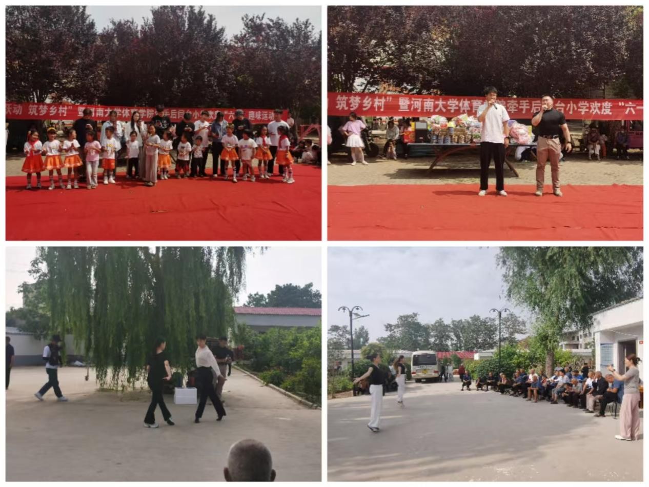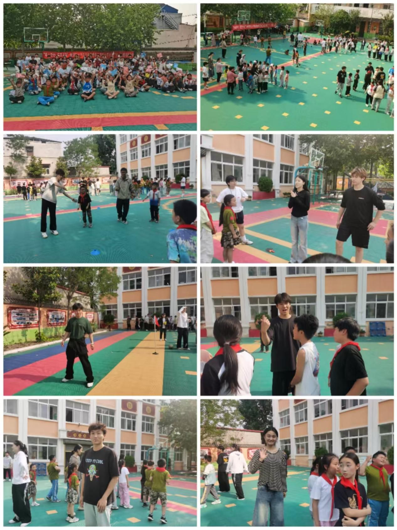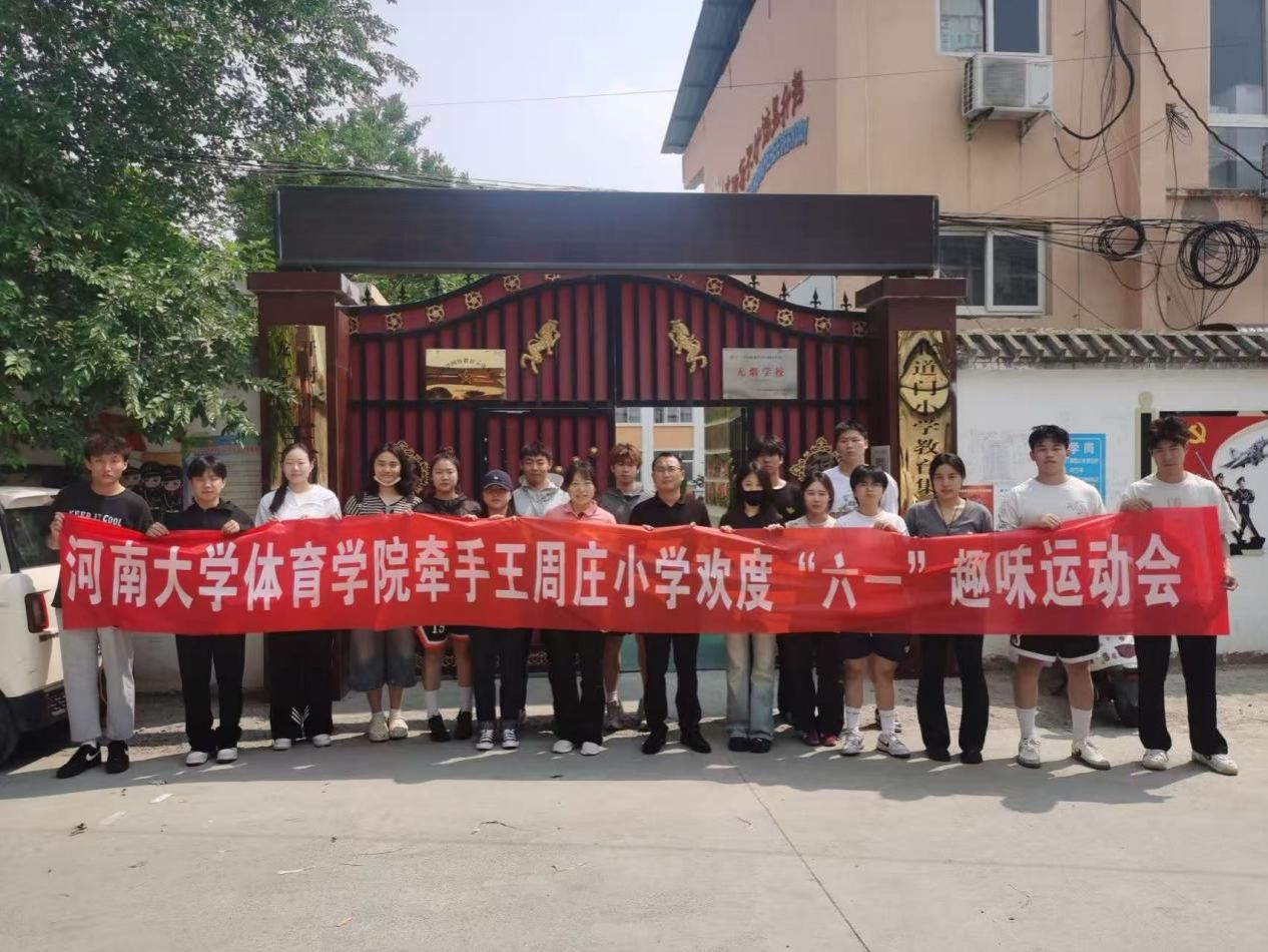 5月29日下午,体院师生首先走进开封市龙亭区柳园口乡王周庄小学,为这里的孩子们带来了一场别开生面的六一趣味运动会。活动现场,孩子们热情高涨,积极参与到各项趣味体育项目中。老师们和学子们耐心引导、热情服务,陪伴孩子们度过了一段欢乐的时光。不仅如此,他们还为孩子们精心准备了文具和小礼品,鼓励孩子们努力学习,茁壮成长。