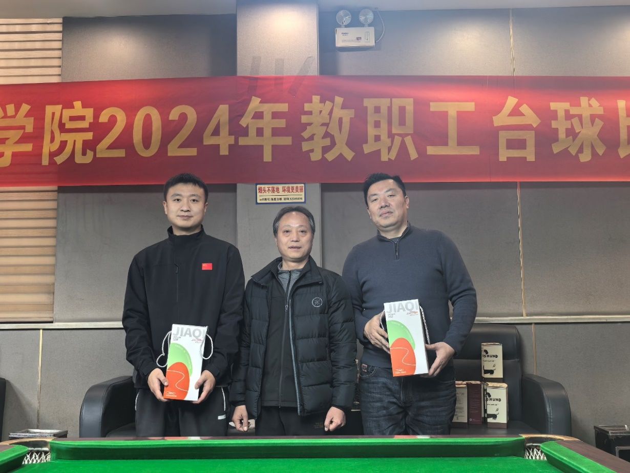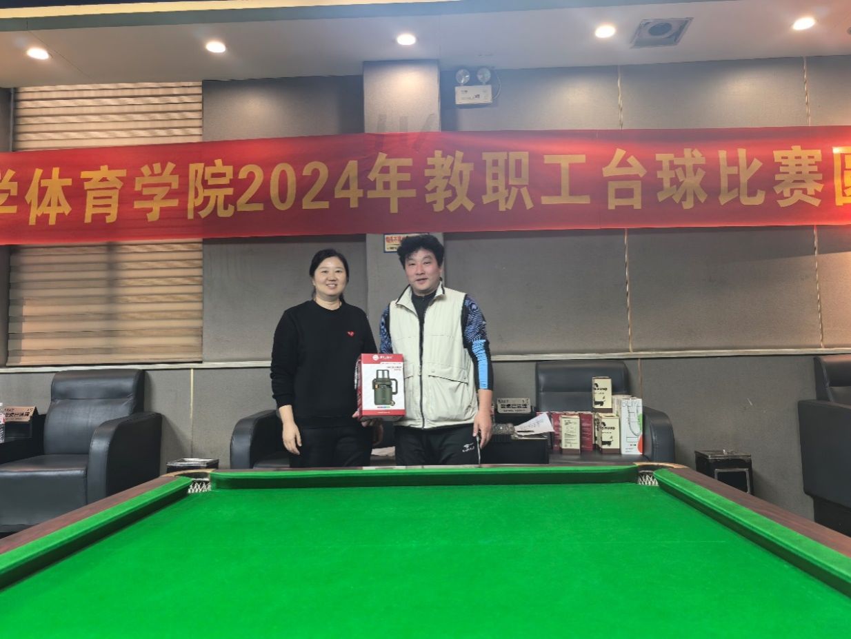 比赛中,参赛老师全身心投入,发扬拼搏精神,展现出了高超的球技,现场精彩不断。经过多轮次的激烈角逐,最终田凌、司磊两位老师获得一等奖,田剑、陈治两位老师获得二等奖,周屹嵩、刘煜伦、李潇、徐伟四位老师获得三等奖。学院党委书记段廷良,副书记、工会主席韩雪,工会副主席李俊辉为获奖老师颁发了奖品,德赢winac米兰2024年教职工台球比赛圆满收杆。