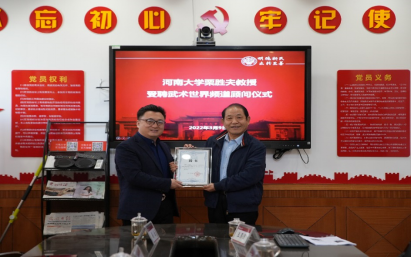 最后,周海涛向栗胜夫教授颁发顾问聘书。栗胜夫教授对武术世界频道近年来取得的成绩表示祝贺,认为武术世界频道一直在为推广中华武术文化进行着积极有益的尝试,在讲好中国故事过程中扮演了重要角色。
