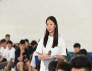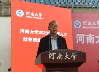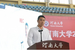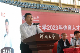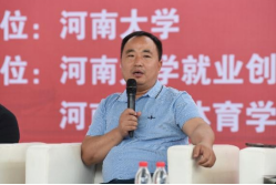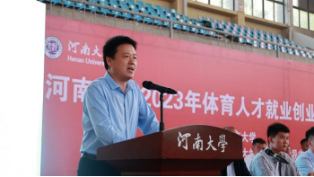 开幕式第三项,河南瑞火体育活动策划有限公司李春伟董事长进行发言,李春伟董事长为同学们提出四点建议:一是转变学生身份,提前适应社会环境;二是学会选择,考虑好自己未来发展的方向;三是选择更大的工作平台,为大家带来更多发展机会;四是鼓励同学们进行创业。