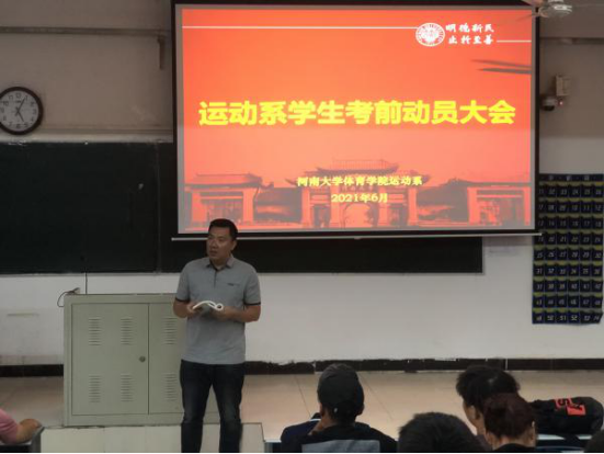 随着期末考试的临近,为了营造良好的考试氛围。6月24日,运动系2021年学生考前动员大会在十号楼128教室举行。德赢winac米兰党委副书记王建国,德赢winac米兰党委办公室主任、运动系主任周屹嵩,运动系学生辅导员吴磊、常明杰和全体运动系本科学生参加会议。