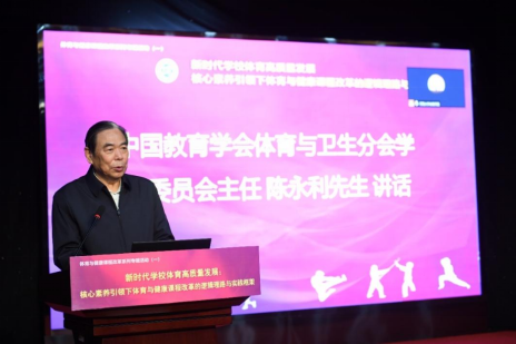 陈永利从“党中央对学校体育的重视程度前所未有;课程标准的目标清晰程度前所未有;学校体育的条件明显改善;体育健康教师教学改革的积极性前所未有”四个方面讲述了目前学校体育的发展。同时强调体育与健康教育是学校教育的重要组成部分,是最大的民生工程。提出要认真开展学校体育改革,积极推动学校体育工作,明晰体育健康的大概念,实施教学设计的大单元,落实体育教学的大任务,解决教学实践的大问题。
