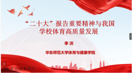 然后,季教授从坚持中国共产党领导、坚持中国特色社会主义、实现高质量发展发展全过程人民民主、丰富人民精神世界、实现全体人民共同富裕、促进人与自然和谐共生、推动构建人类命运共同体、创建人类文明新形态九个角度分析,全面理解党的二十大报告精神,走中国式现代化的体育与健康课程高质量发展之路,将其精神落实到课程标准的修订和体育与健康课程的教学实践中,实现体育与健康课程的高质量发展。