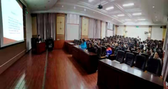 蔡向阳教授首先就体育健康标准的意义、如何落实课程标准、足球校本课程资源的开发以及提升足球教学质量四个方面进行讲述。其次以《关于全面加强和改进新时代学校体育工作的意见》为背景,从总体要求、深化教学改革、全面改善办学条件、积极完善评价机制、切实加强组织机构进行深入探讨,让在场的师生受益匪浅。