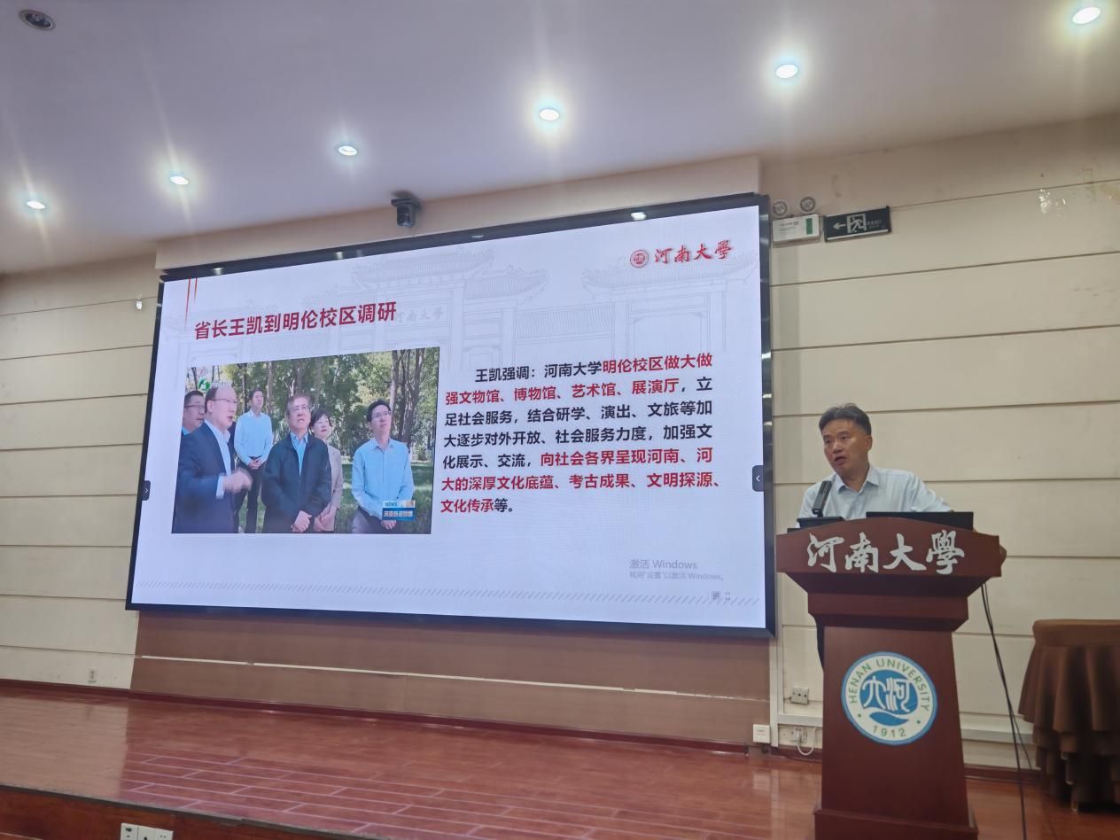 报告会上,校宣讲团成员王振存紧紧围绕习近平总书记在河南考察时的重要讲话精神,从省部领导到校调研讲话精神、三年来河大的发展成效和2025年学校工作部署三个方面对德赢面临的历史机遇和挑战,2025年德赢十大重点任务等内容进行了深入解读,以及落实这些行动部署的实施路径。王振存重点传达了张锁江校长部署的2025年度重点工作任务和季波书记提出的具体工作要求,全体教职工生要切实把思想和行动统一到党中央、省委省政府、学校党委行政决策部署上来,以终为始、奋勇争先,以“新认知、新行动、新成效”,加速推动学校“双一流”建设再攀高峰。