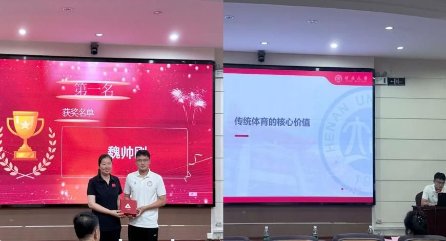 获奖同学魏帅刚针对获奖文章《守正创新导向下传统体育铸牢中华民族共同体意识的研究》进行了精彩的汇报分享,重点分享了传统体育的核心价值以及守正创新中的三种辩证关系,强调了在未来的创新发展中应始终牢记传统体育是中华传统文化的一部分。