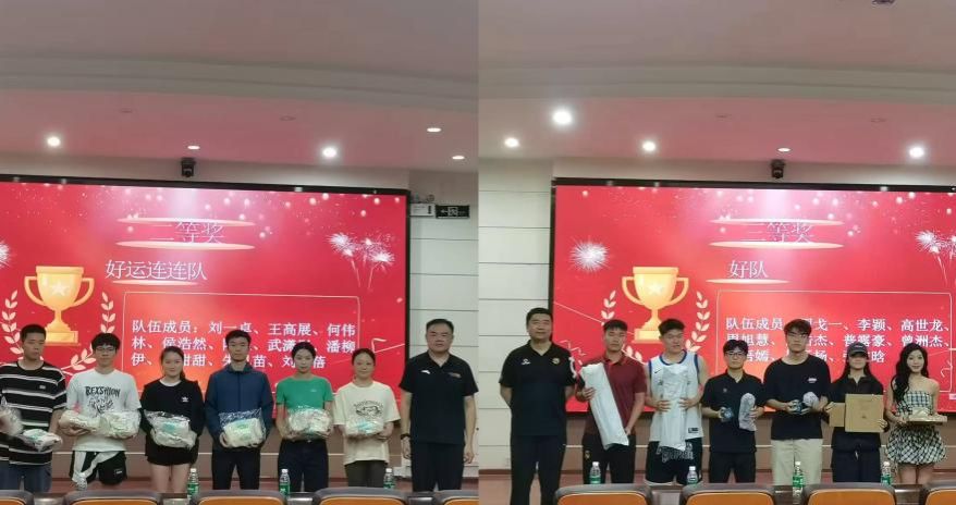 接着,进入趣味运动会表彰环节。韩雪、姚远、时震宇老师为在趣味运动会中获奖的团队颁发荣誉证书和奖品。荣获本次趣味运动会前三等奖的队伍分别是:一等奖“有请下一队”,二等奖“好运连连队”,三等奖“好队”。
