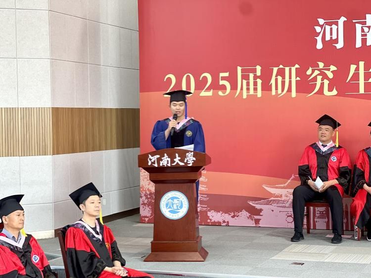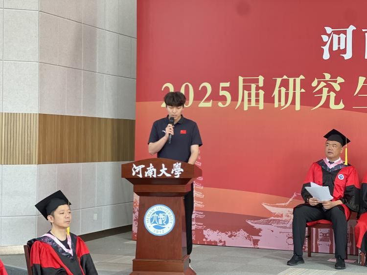 在2022级毕业生代表武展鹏的发言中他深情回顾求学时光,诚挚感谢导师悉心指导、同窗互助陪伴,分享科研探索与学术成长的心路历程。同时展望未来,立志以所学投身专业领域,践行学术理想,不负母校培育,展现新时代青年学子勇担使命的决心与风采。