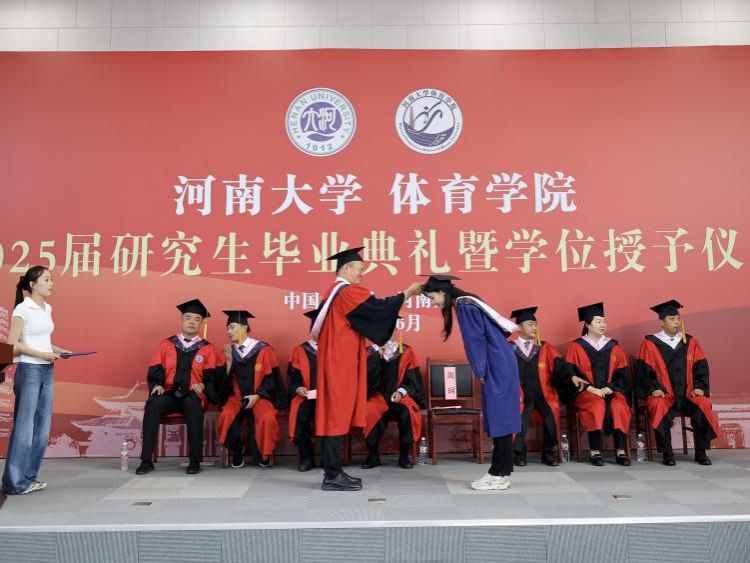 随着毕业典礼在雷鸣般的掌声中圆满落幕,173名毕业生即将带着母校的殷切嘱托与师长的深情祝福奔赴四海。这场庄重而温情的仪式,不仅是对学术征程的总结与加冕,更是一堂生动的思政课:从院长援正流苏的郑重仪式中感悟学术传承的使命,从教师"文明精神、野蛮体魄"的寄语里汲取奋进力量,从学弟学妹"接续奋斗"的誓言中见证体育精神的薪火相传。当《德赢ac米兰官方合作校歌》的旋律在报告厅回荡,毕业生们胸前闪烁的学位绶带与眼中绽放的青春光芒交相辉映,定格成这个盛夏最动人的画面。愿此去经年,他们永葆体育人的热血担当,在强国建设、民族复兴的赛道上跑出当代青年的最好成绩,让河大体育精神在祖国大地上绽放新的荣光!