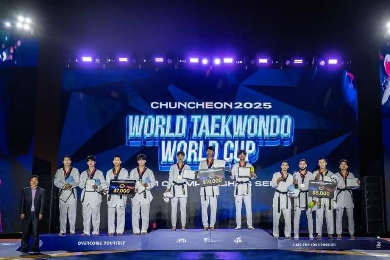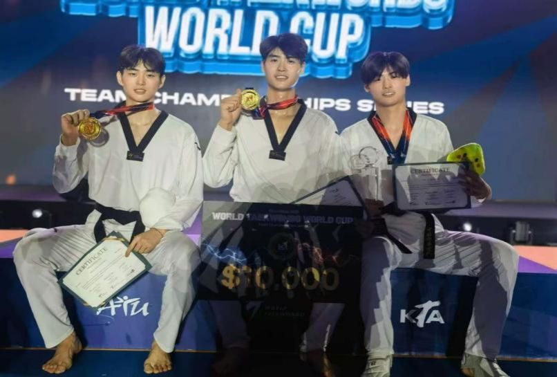 当地时间7月9日晚,韩国春川举行的2025年跆拳道团体世界杯锦标赛传来喜讯,在男子团体项目比赛中,德赢winac米兰2023级运动训练专业学生陈诚与队友肖晨鸣、赵炯溥组成的中国队最终以2:0力克韩国队勇夺冠军。