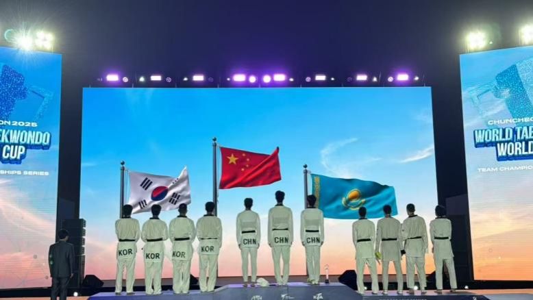2025年世界跆拳道团体世界杯锦标赛共有包括中国、韩国、法国等在内的多支队伍参赛。经过3天激烈角逐,由陈诚、肖晨鸣、赵炯溥三位选手组成的中国队在男子团体项目的比拼中一路过关斩将,先后战胜法国队、摩洛哥队,最终与东道主韩国队狭路相逢于决赛赛场。决赛中,陈诚同学发扬“自信、拼搏、开放、创新”的新河大精神,攻如雷霆,守似磐石,与队友携手拼搏,牢牢锁定胜局。最终,中国队以2:0力克强敌,让五星红旗在春川赛场傲然升起!