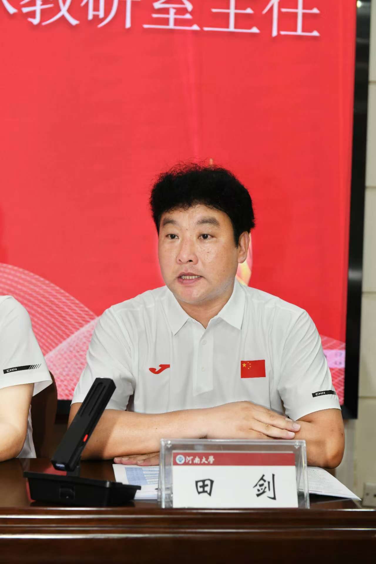 田剑代表培训讲师发言。他对此次培训讲师团队的基本情况进行说明,希望学员们能够珍惜此次培训机会,欢迎学员们积极与讲师们沟通交流,为“校园足球”发展添瓦助力。