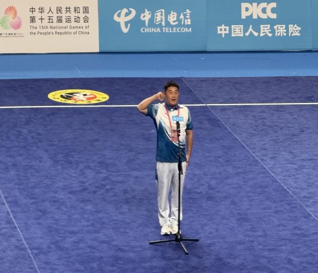 9月27日,中华人民共和国第十五届运动会群众展演太极拳项目决赛在广东佛山圆满落幕。中华人民共和国第十五届运动会群众展演太极拳项目的成功举办是贯彻落实习近平总书记关于体育工作重要指示精神和全民健身国家战略的生动实践,是推动群众体育与竞技体育全面发展、构建更高水平全民健身公共服务体系的具体举措。本次赛事紧扣“全民全运、同心同行”主题,汇聚了全国56支代表队、共计610名运动员,设三项拳术、三项器械共六个项目展开角逐。德赢winac米兰金龙副教授受聘担任大赛技术官员,并代表全体裁判员宣誓。在执裁过程中,他恪守竞赛规则,坚持公平公正,以专业的评判和严谨的态度赢得各方好评,展现了出色的专业素养与职业精神。