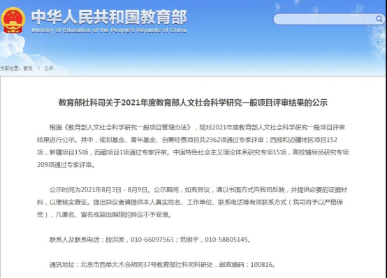 德赢两位教师申报材料通过2021年度教育部人文社科研究一般项目专家评审